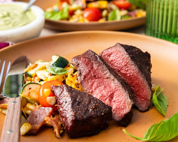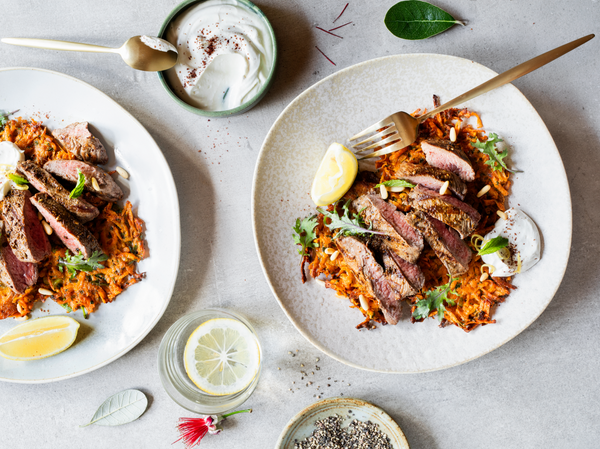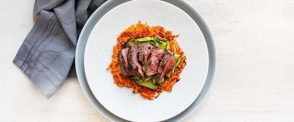 Elevate your meal with this delectable Venison Steak Stack. Featuring tender Silver Fern Farms Venison Steak, this recipe combines the rich flavors of seared venison with the sweetness of guava sauce and the crispiness of kumara rosti. Paired with sautéed zucchini, this dish offers a perfect balance of savory and sweet, making it an impressive and satisfying meal for any occasion.